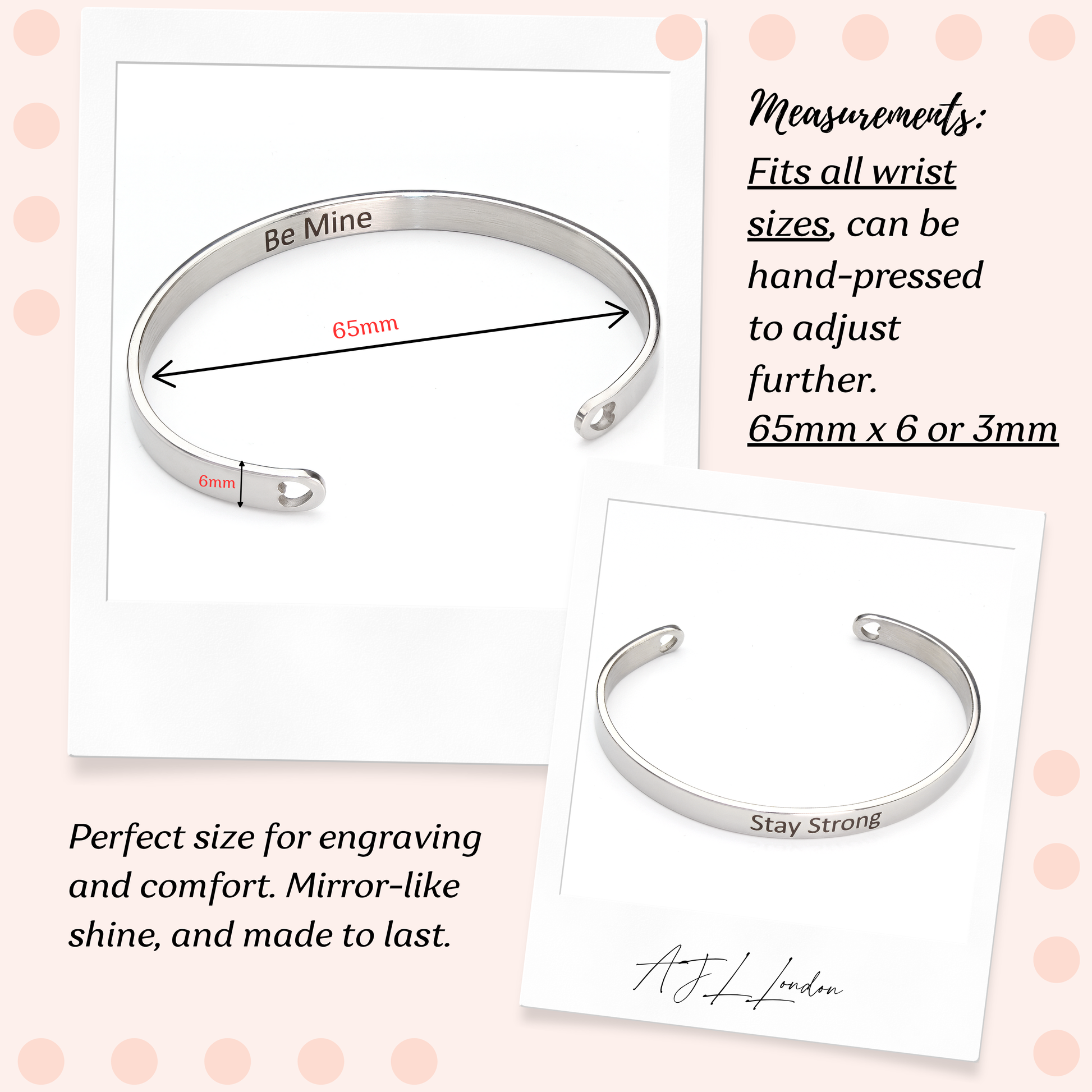 AJL Personalised Engraved Bracelet Cuff Bangle with Any Text/Name